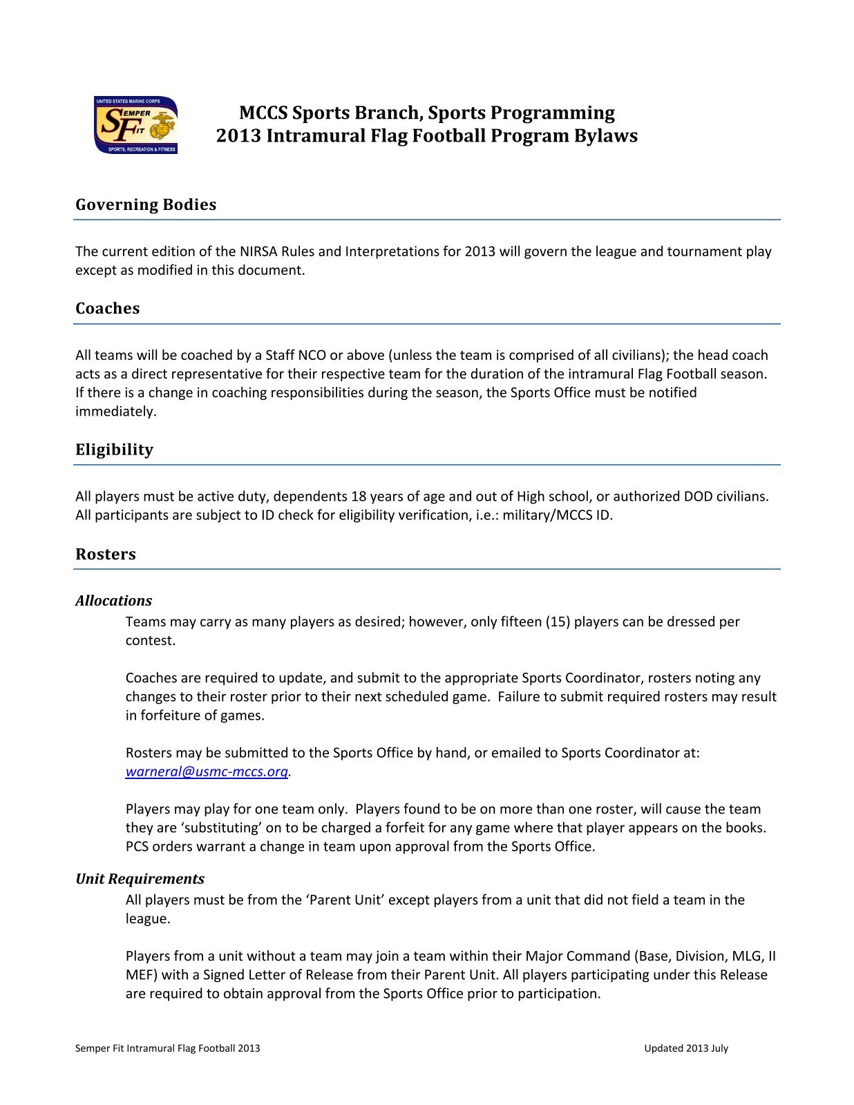 MCB Camp Lejeune Health Promotion Director Craig Reed ReedCF@lejeune.usmc.mil 910-451-0023 MCB Camp Pendleton Health Promotion Coordinator Nicole Ayan AYANNM@usmc-mccs.org ... Doc Retrieval
